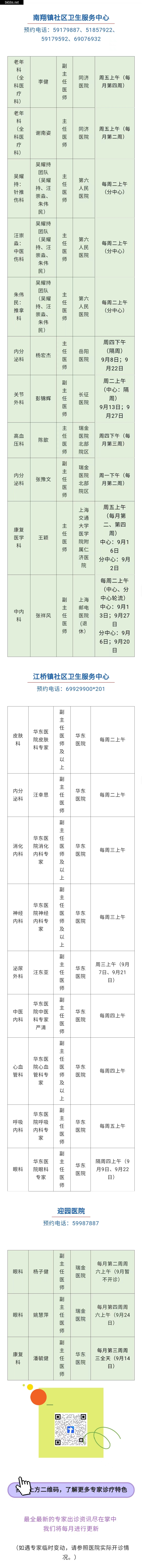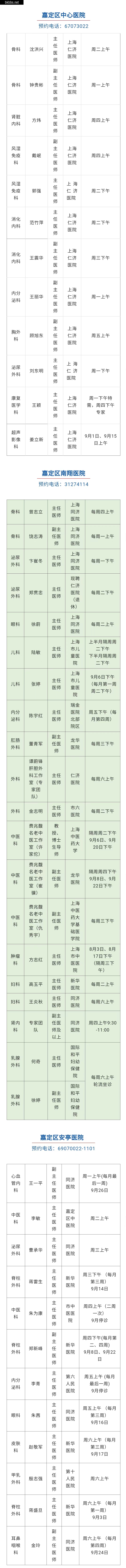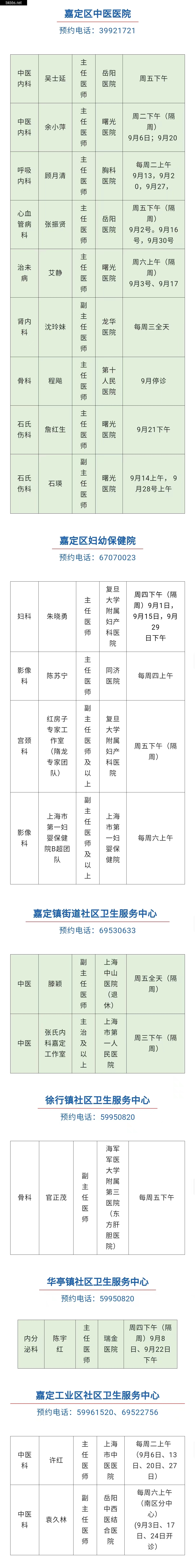 9月市级专家的出诊信息来啦~