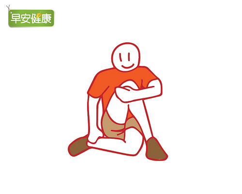 步骤3:左手臂抱住右膝,往胸部靠近,维持15~20秒。反方向亦同。