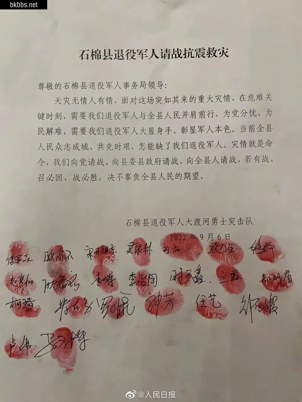 “若有战,召必回,战必胜”,这是四川石棉县退役军人在请战抗震救灾时写下的话。