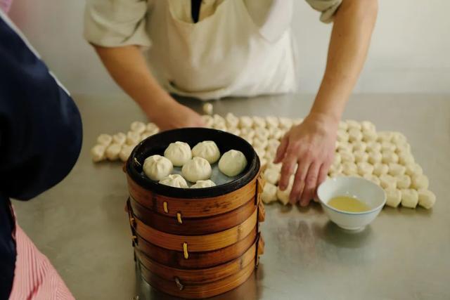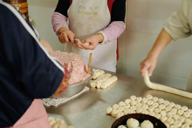 当地小笼包的形态更像是一个小包子,要将发好的面团进行反复揉搓,再“噔”的一声,揪成大小均匀的剂子,你甚至可以感受到剂子在呼吸,接着师傅会把剂子揉圆按扁再往里包进满满的馅料。