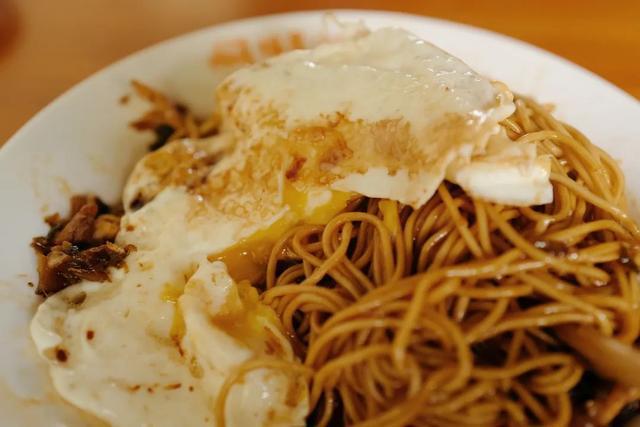 对了,记得一定要加上一个煎得外焦里嫩的荷包蛋,一筷子戳下去,让半熟的蛋黄流出来,再拌进面条里,不论是滋味还是口感立马就会变得更加丰富了。