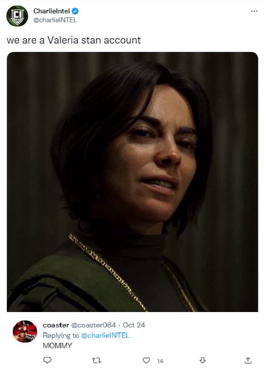 而瓦莱瑞亚的扮演者Camargo,大概是没想到一个戏份并不多的角色,能在得到了出乎意料的瞩目,为此还特意发推感谢玩家社区。