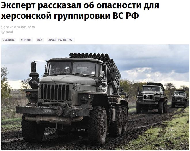 “俄军离开是为了永远回来”,俄罗斯tsargrad电视台网站说,放弃赫尔松事关胜利,虽然事实是苦涩的,但是并不是总是如此,俄军离开赫尔松是为了保存军队,从而保住最终胜利的可能性。
