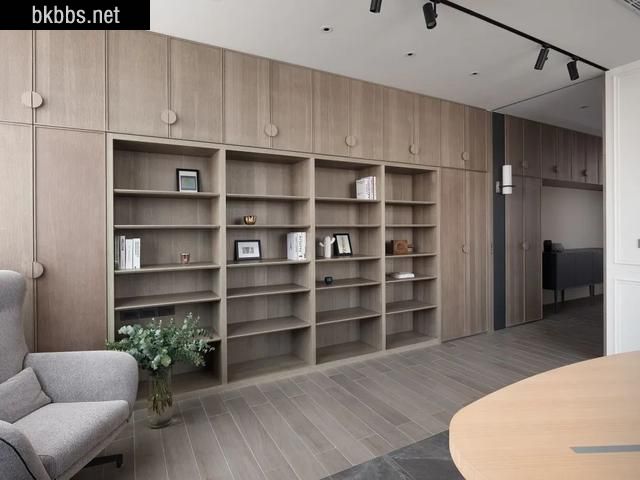 ▲侧边定制一个开放式的展示架,摆上书籍与装饰品,也让空间充满文艺端庄的高级气息。
