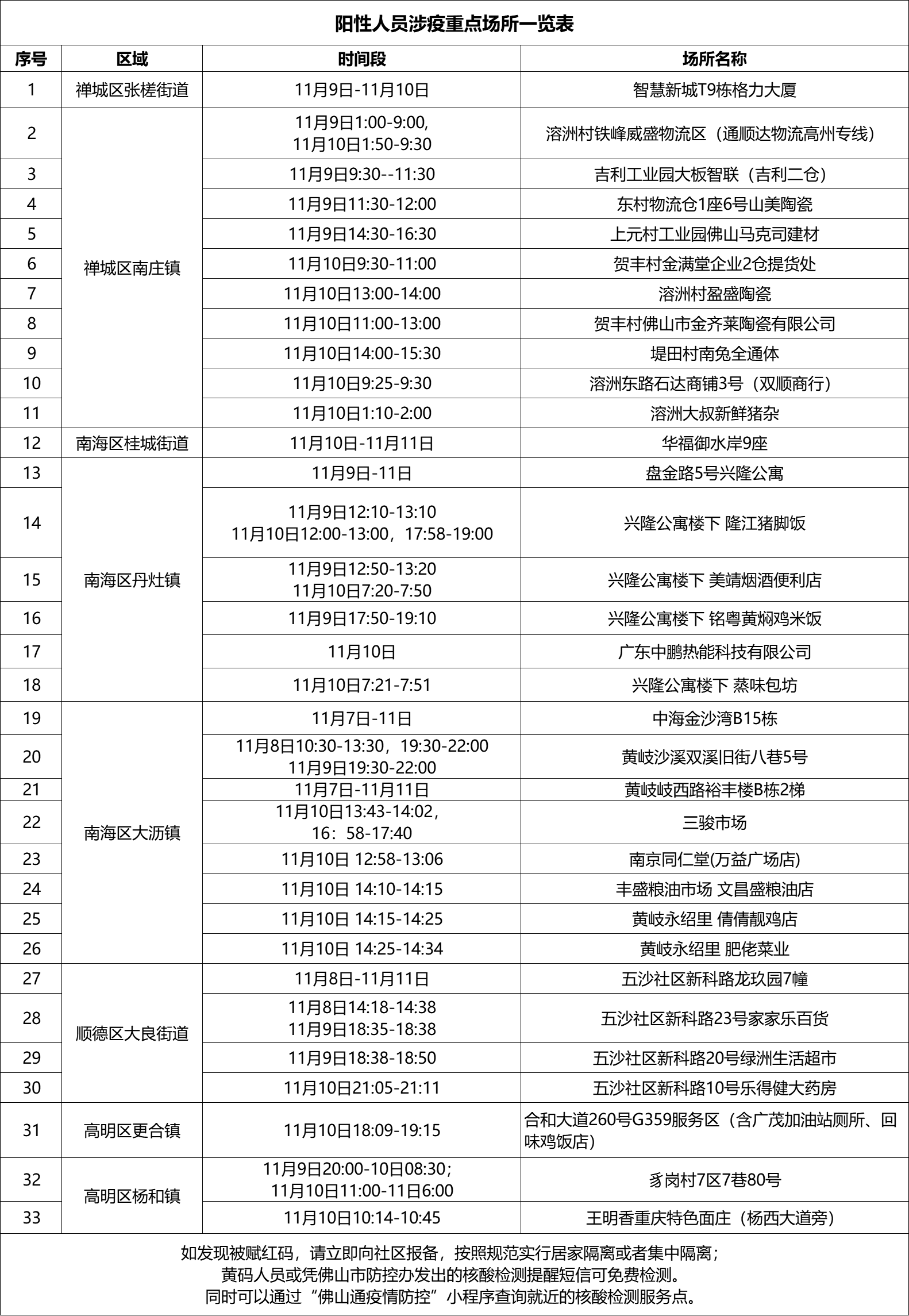 佛山疫情重点场所名单排查最新消息: