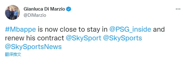 姆巴佩与巴黎的合同将在2022年到期,此前皇家马德里一直是他最有可能的下家。不过,意大利记者迪马济奥表示,姆巴佩在过去一段时间与皇马达成了口头协议,但他改变了自己的想法,接近与巴黎续约。