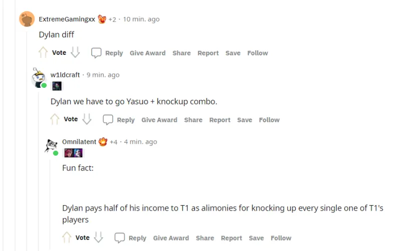 每当T1的队员被击飞的时候,Dylan工资的一半会作为赡养费付给T1。
