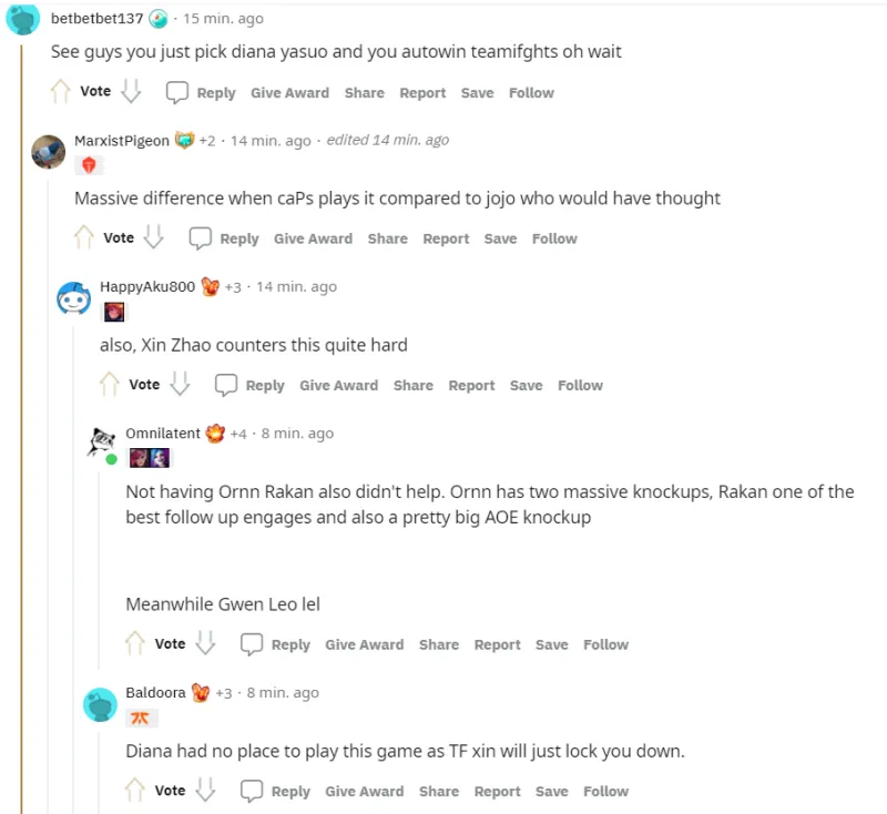 同时阵容中没有奥恩和洛也是个问题。奥恩有两个击飞,洛有最好跟团的开团之一,而且还有一个非常大的AOE击飞。