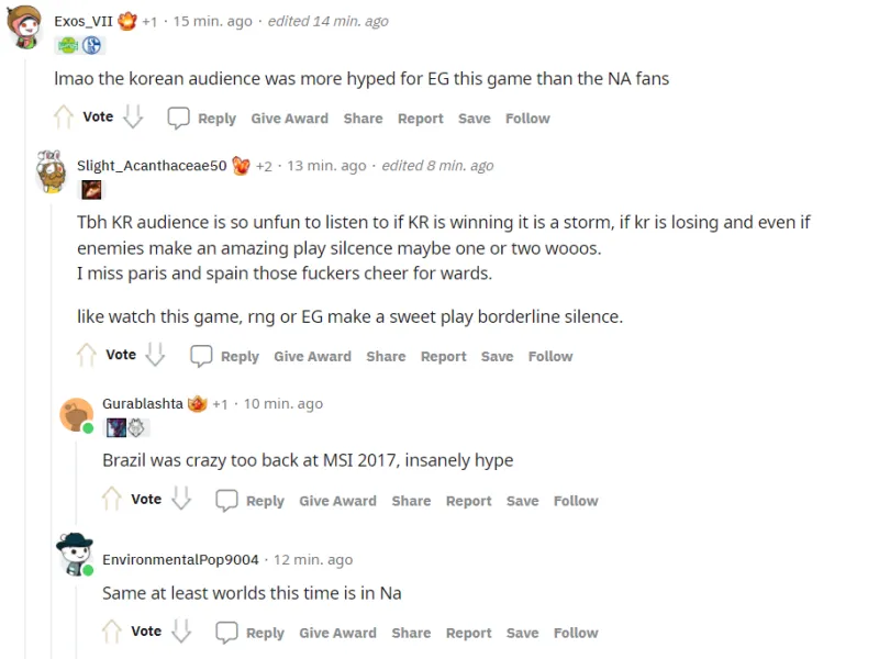 韩国观众这场比北美粉丝更加支持EG,笑死我了。
