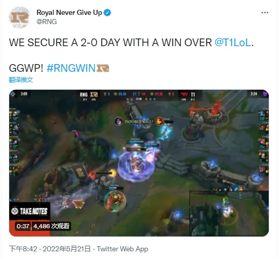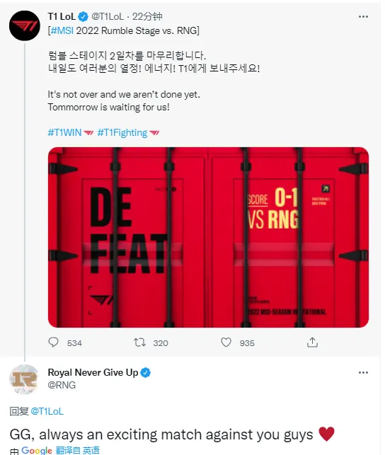 LCK官推:T1输给了RNG,但是他们会在第二轮完成复仇的
