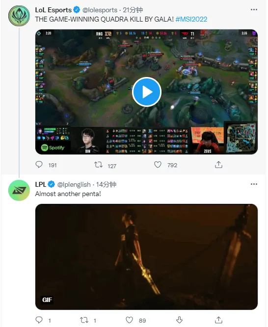 LOL官推:GALA的四杀帮助队伍赢下比赛!
