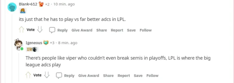 像Viper这样的选手都没法在季后赛中打进四强,LPL里面都是顶尖ADC。