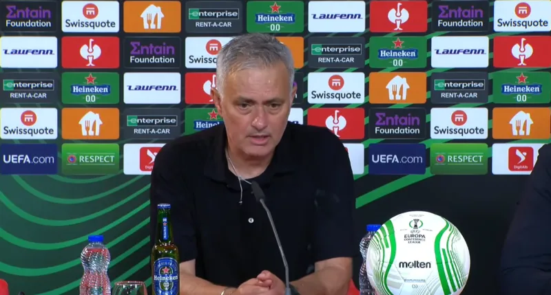 05月26日讯 今天凌晨罗马在欧协联决赛中1-0战胜费耶诺德捧得冠军,赛后罗马主帅穆里尼奥也出席了官方新闻发布会。