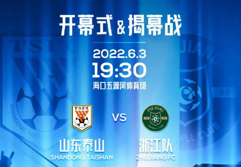 6月3日19:30,2022中超联赛将于海口市举行开幕式,开幕式结束后揭幕战卫冕冠军山东泰山对阵升班马浙江队。