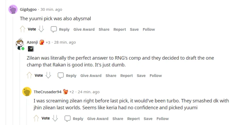 在他们选最后一个角色之前,我就在说选时光,那样会非常好。他们用时光和烬在在去年世界赛打爆了DK,感觉Keria没有信心,然后选了悠米。