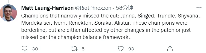 “以下是一些差点就得到改动的英雄:风女,炼金,巨魔,龙女,铁男,艾翁,鳄鱼,索拉卡,牛头。这些英雄在处于被修改的边缘,但是要么受到版本中的其他改动影响,或者是因为英雄平衡框架而错过了这次改动。”