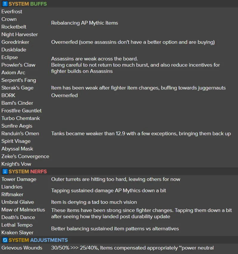 Riot Phroxzon:“12.11会是个改动非常大的版本。为团队和帮助我们的人团结起来将一切汇集到版本中中而感到非常自豪。我们非常注意不推回上个版本做好的改动,而且我们尽力在保持装备的选择,英雄的感觉以及特点,以及不同位置的平衡等等。