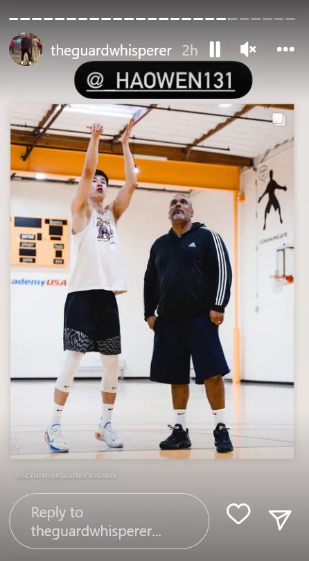 今日讯 北京时间今日,训练师Olin Simplis更新Instagram账号,晒中国球员郭昊文训练照。