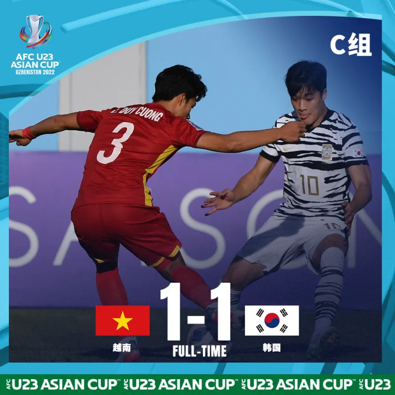 在U23亚洲杯C组中,越南U23力压泰国U23和马来西亚U23居小组第2,韩国U23以4分暂居第一。