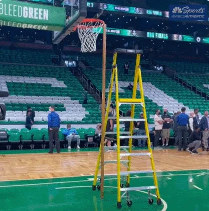 今日,赛前勇士热身时,由于篮筐高了一些,勇士方面暂停了热身并调整篮筐高度。