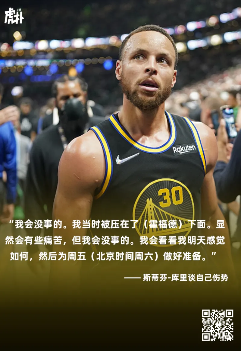 赛后勇士后卫斯蒂芬-库里接受采访,谈到自己的伤势表示: