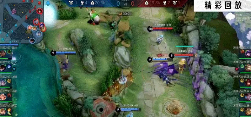 4分30秒,双方在对抗路爆发大乱战,小义暃残血遭到无心沈梦溪大招收割无奈阵亡