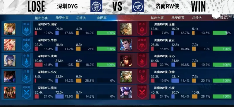 Game1:济南RW侠蓝色方,深圳DYG红色方