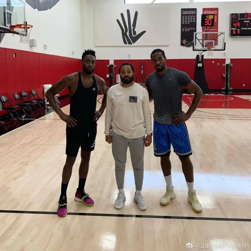 06月12日讯 上赛季效力于上海男篮的外援富兰克林更新微博,晒出自己和伦纳德一起训练的照片。