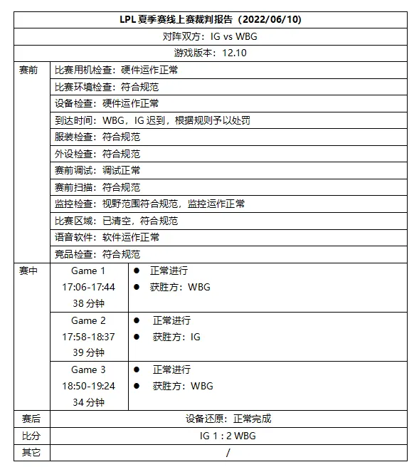 到达时间:WBG、iG迟到,根据规则予以处罚