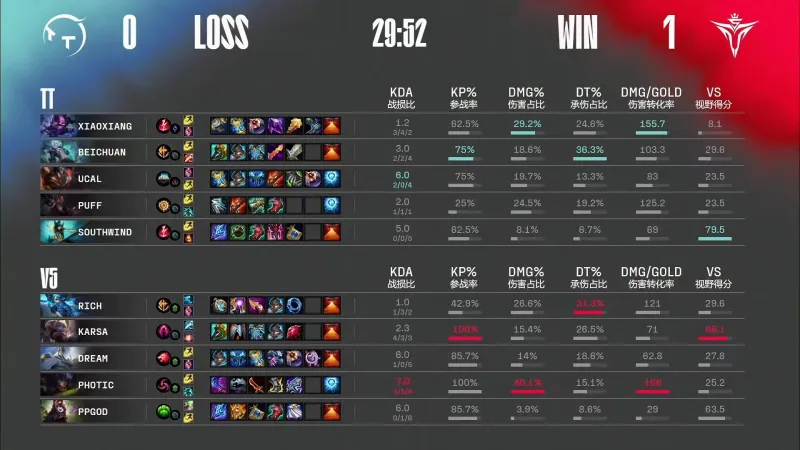 06月15日讯 Game1:蓝色方:TT,红色方:V5