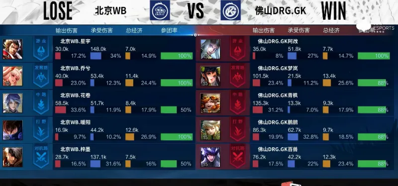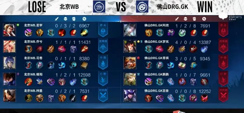 Game1:北京WB蓝色方,佛山DRG.GK红色方