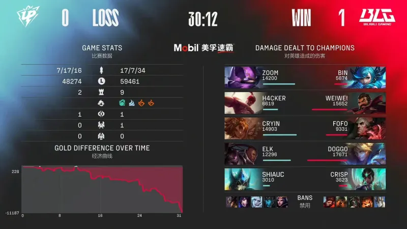 06月16日讯 GAME1:蓝色方UP,红色方BLG