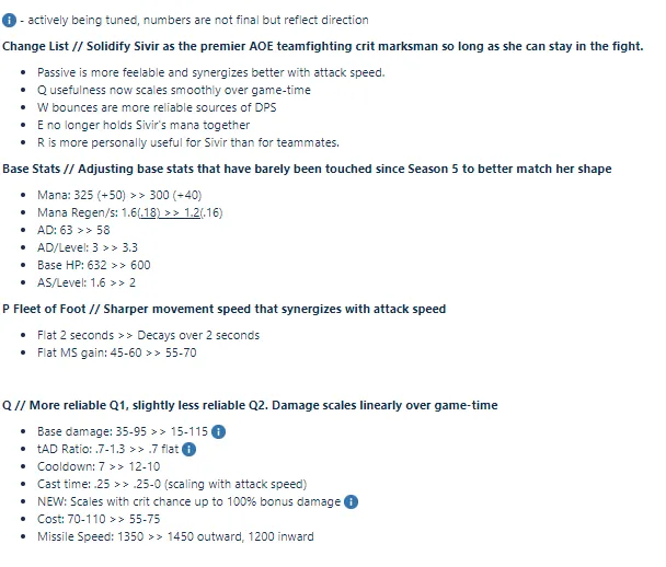 06月22日讯 LOL官方公布了希维尔小型重做的内容,这些改动将在本周进入测试服。具体改动如下(未经允许禁止转载,搬运截图):