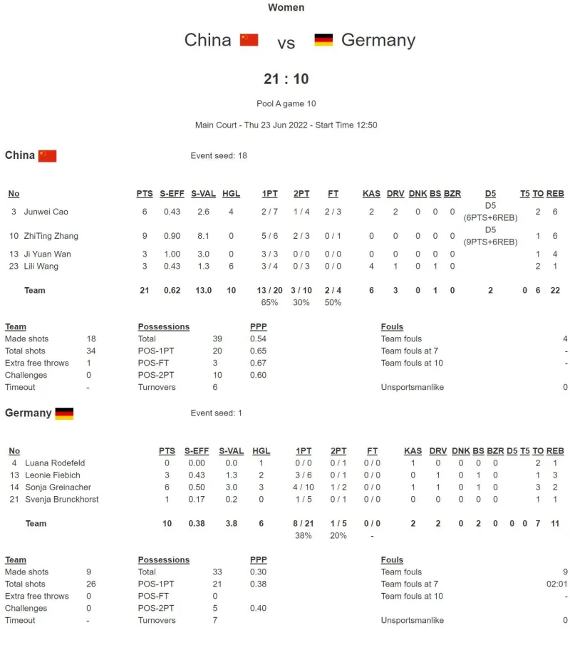 06月23日讯 北京时间今日,FIBA三人篮球世界杯继续进行,中国女队21-10战胜德国,锁定出线名额。