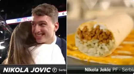 “尼古拉-约维奇刚刚在首轮27顺位被热火选中;永远不要忘记尼古拉-约基奇在Taco Bell的广告中被选中
