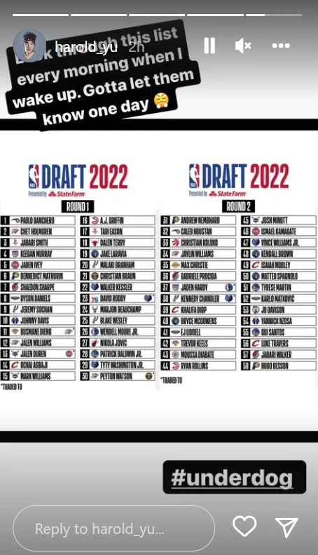 06月24日讯 北京时间今日,余嘉豪更新Instagram账号晒NBA选秀结果图。