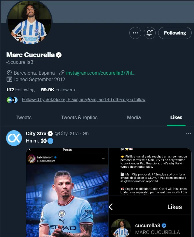 随后著名曼城自媒体City Xtra捕捉到了这一行为,并发在了推特上,而进入2022年此前只在推特上点赞2条动态的库库雷利亚也点赞了City Xtra的这条动态。