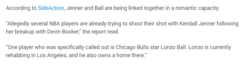 “据称,在肯达尔-詹娜与德文-布克分手后,有几名NBA球星已经在尝试与肯达尔-詹娜交往,”SideAction的文章中写道。