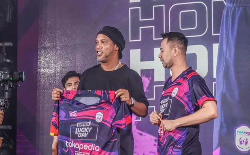 06月27日讯 前巴西足球巨星罗纳尔迪尼奥近日来到了印度尼西亚,他与印尼乙级球队RANS Cilegon FC签下了为期一周的合同,在这一周的时间里,小罗将代表RANS Cilegon FC出战与另外三支球队的友谊赛。