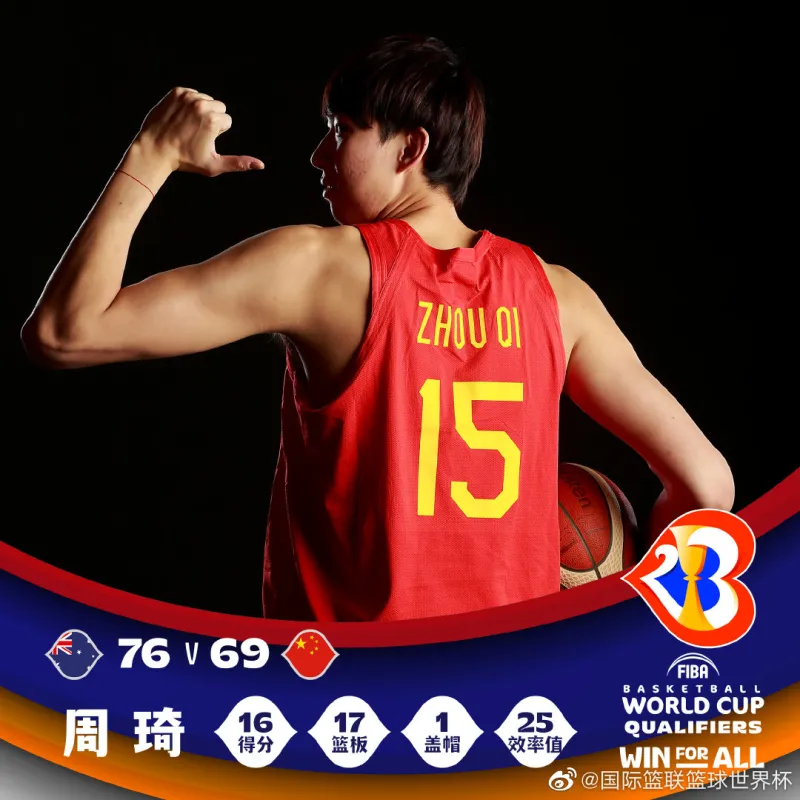 “得分全场并列第一,篮板全场第一,效率值全场第一。在奋斗了一个赛季的土地上,周琦又一次证明了自己。” FIBA篮球世界杯官方微博写道。
