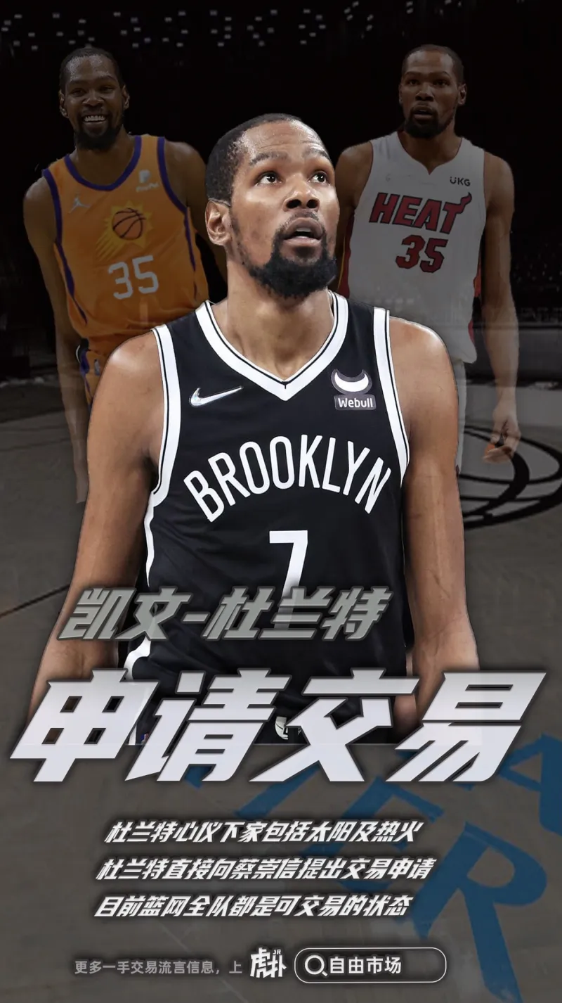 多位消息人士透露,随着杜兰特请求交易,篮网所有球员都可以被纳入交易讨论。