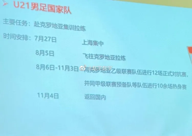 关于U21国家队去克罗地亚拉练比赛,足协那天开会给所有人展示的幻灯片是这么说的。当然,也是模棱两可、语焉不详。