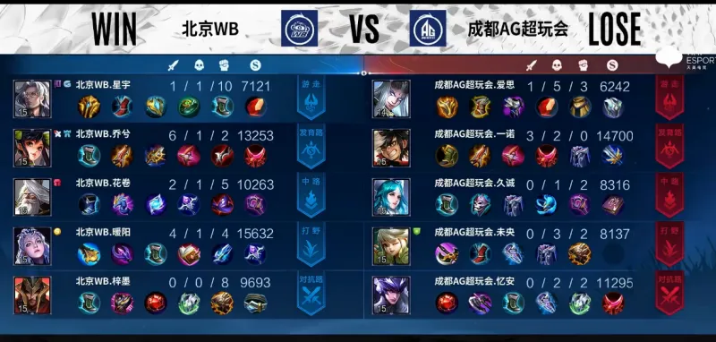 Game2:蓝色方北京WB 红色方成都AG超玩会