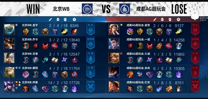 Game3:蓝色方北京WB 红色方成都AG超玩会