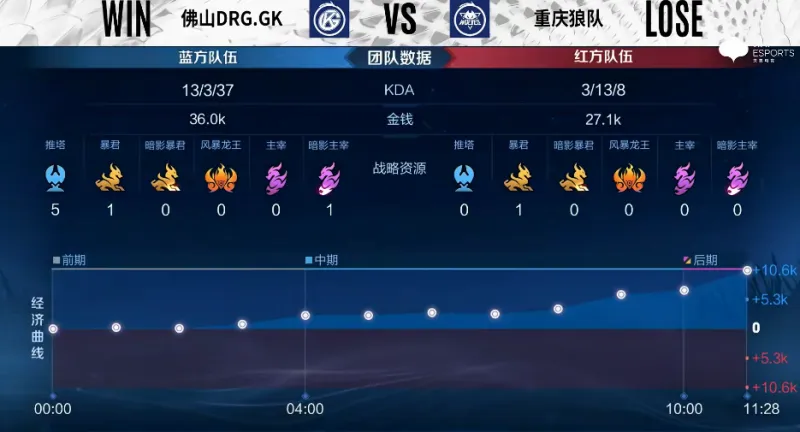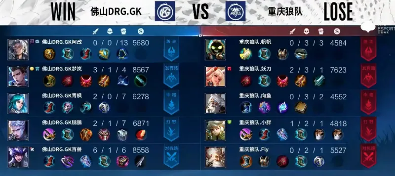 Game2:佛山DRG.GK蓝色方,重庆狼队红色方
