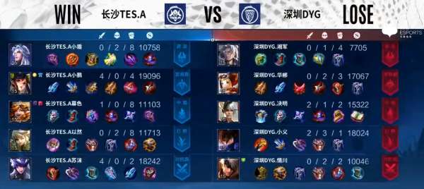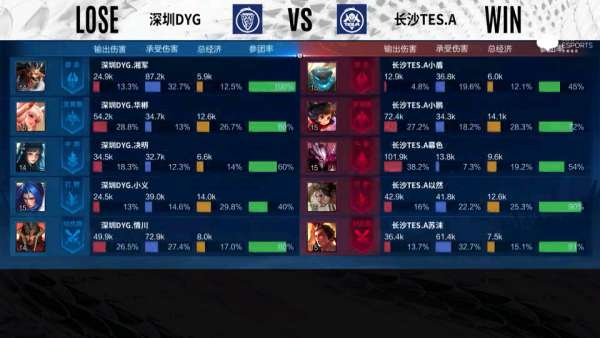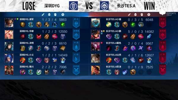 Game1:蓝色方长沙TES.A 红色方深圳DYG