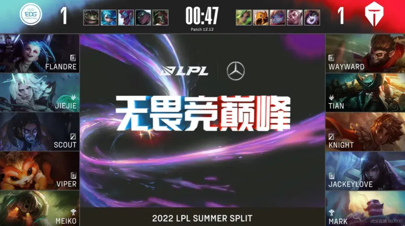 EDG选用:Flandre纳尔、Jiejie破败之王、Scout塞拉斯、Viper金克丝、Meiko泰坦