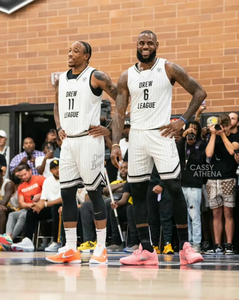 07月17日讯 今日,湖人前锋勒布朗-詹姆斯和公牛后卫德马尔-德罗赞搭档代表Cheaters队参加德鲁联赛第6周的比赛。比赛战罢,詹姆斯和德罗赞率领Cheaters队104-102险胜Black Pearl Elite,该队保持在本届德鲁联赛中的不败战绩。赛后,德罗赞更新Instagram晒出他和詹姆斯的赛场合照。