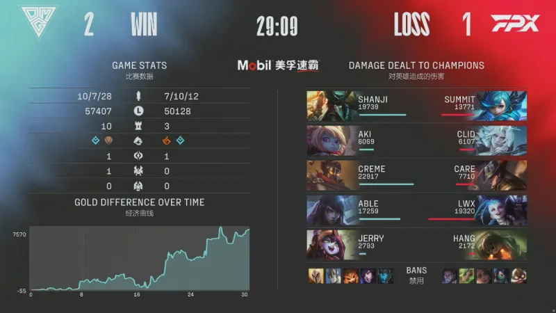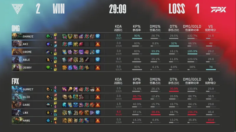 28分钟OMG卷土重来,Able一马当先率队打出1换2,随后强拆基地拿下比赛胜利。