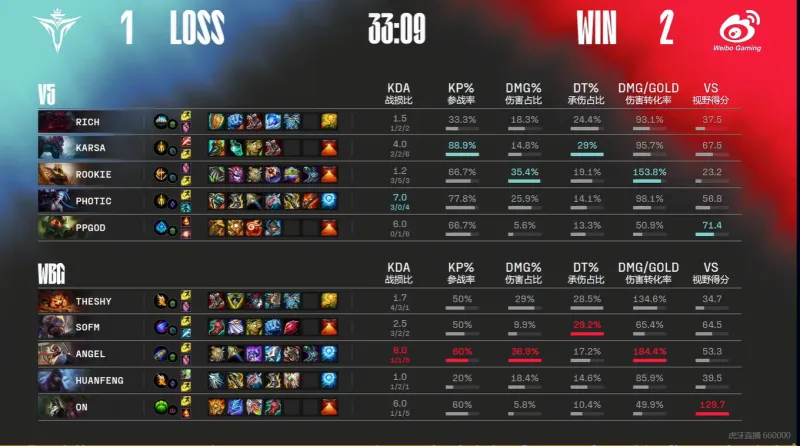 32分钟,WBG三龙汇持续推进,正面团战V5不堪一击,WBG长驱直入一波终结比赛。
